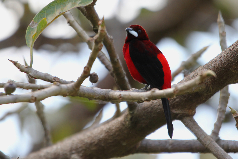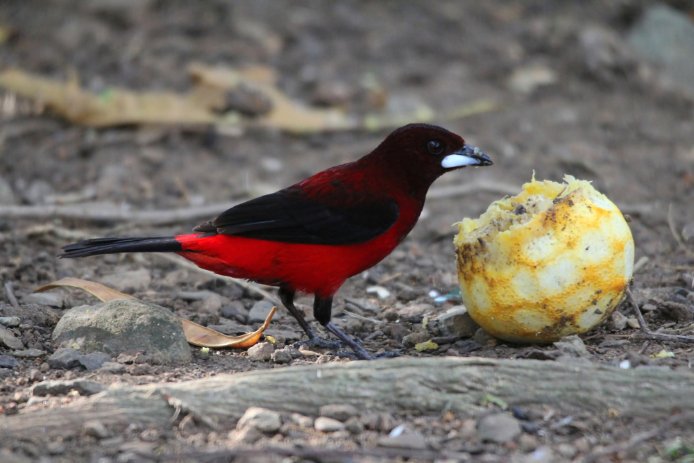The Crimson-backed Tanager (Ramphocelus dimidiatus) is a strikingly beautiful bird occurring in Panama, Colombia, Venezuela, and up to French Guyana. The species can be found in shrubby areas, gardens, and secondary forests. Especially the male has a brightly red coat and even more remarkable is the silvery lower mandible. Females on the other hand are much duller and have a uniform dark bill. I have photographed these pretty birds on a journey through Panama in February 2014 where tanagers can be seen quite commonly.