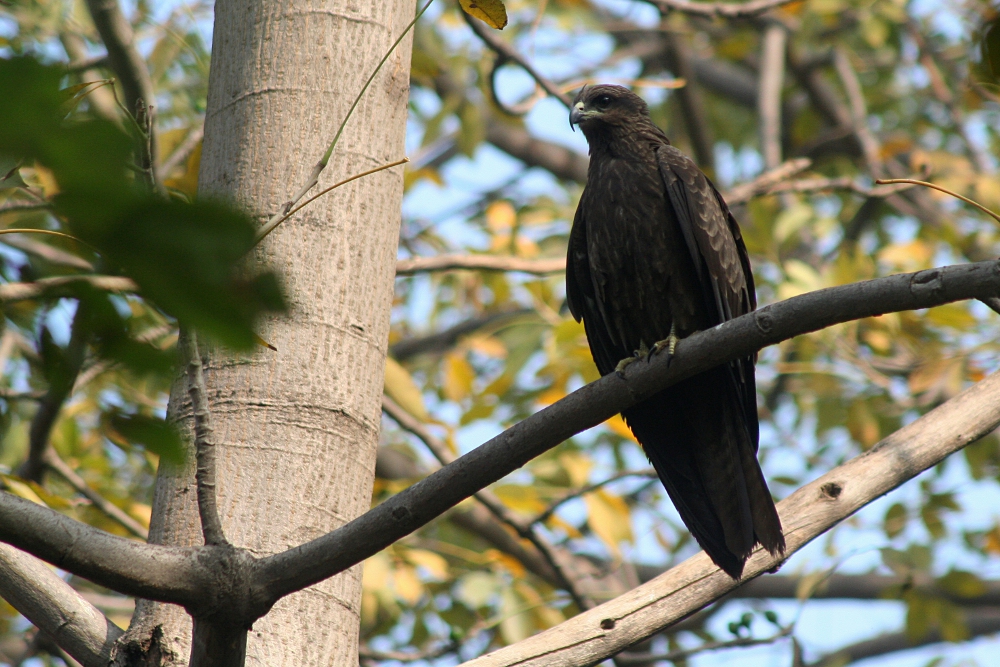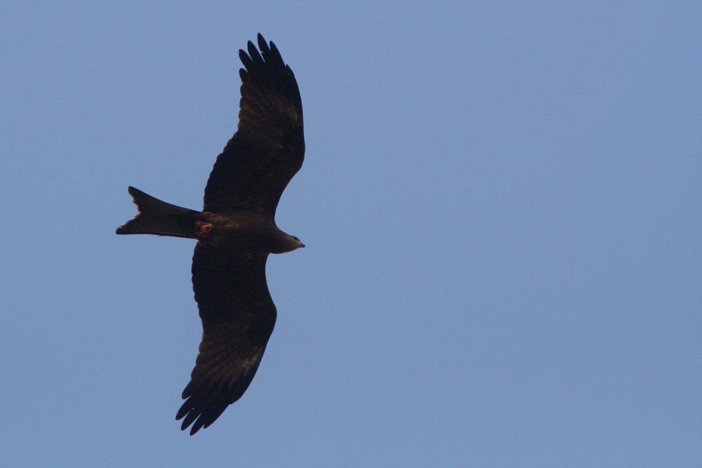 The Black Kite (Milvus migrans) is a medium-sized bird of prey occurring through much of Europe, Africa, Asia, and Australia. With especially large populations in South Asia, some believe it is the most abundant bird of prey on the planet. Characteristic is their rather uniform, brown plumage and a forked tail which can easily be seen since the animals often spend much time soaring and gliding in thermals. The birds are mostly scavengers looking out for roadkill or household refuse, but they are also opportunistic hunters feeding on other birds, bats, and rodents. Black Kites are migratory in temperate regions, but the tropical populations are resident. The birds often form groups and especially in Indian cities large numbers can be seen in the sky throughout the day. I have photographed these graceful raptors in northern India during two journeys in January 2009 and 2010.