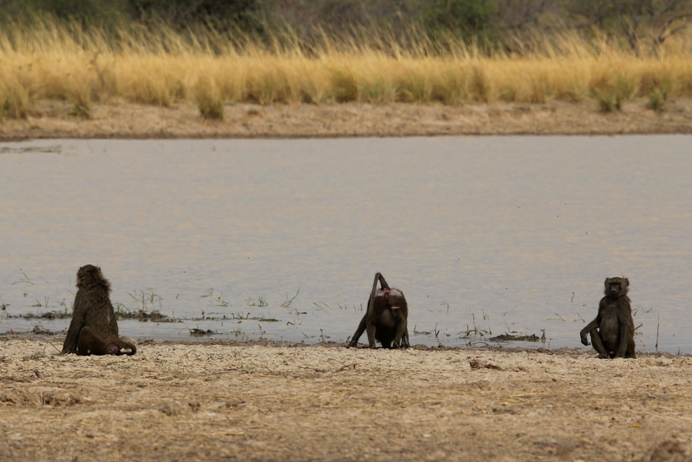 As in other baboon species, Olive Baboons often become used to humans and lose their natural timidity. Consequently, they sometimes enter fields or plantations where they do a lot of damage. Due to such conflicts, the monkeys are commonly hunted and considered a vermin. I have observed these interesting animals in the Pendjari National Park in northern Benin during a journey in February 2012. Also here, the animals do not show fear of humans and closely approach people for food. This can become relatively uncomfortable and I do not want to imagine a fight with an angry baboon having canines several centimeters long!