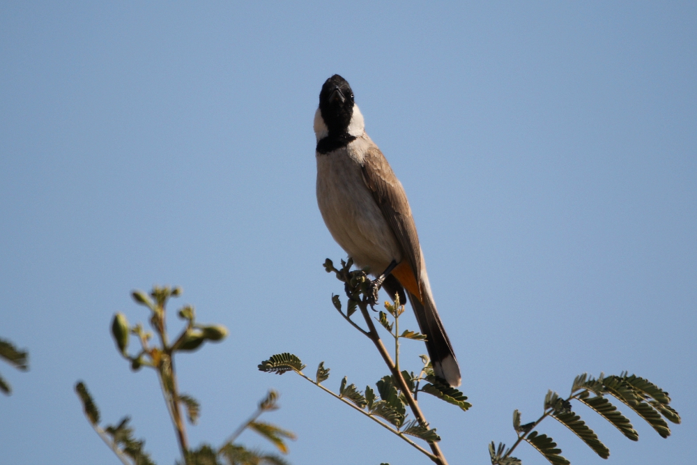 The White-eared Bulbul (Pycnonotus leucotis) is a bird species occurring within a belt from the Middle East through Afghanistan and Pakistan up to India. The birds are adapted to a range of habitats including dry areas with thorny scrubs, open agricultural land with small thickets, gardens, and even mangroves. Usually, they are encountered in pairs or small groups with the plumage of females and males being alike. The birds feed mainly on fruits, seeds, and insects. I have photographed these colourful birds during a journey through Kachchh in Gujarat, India, during January 2014.
