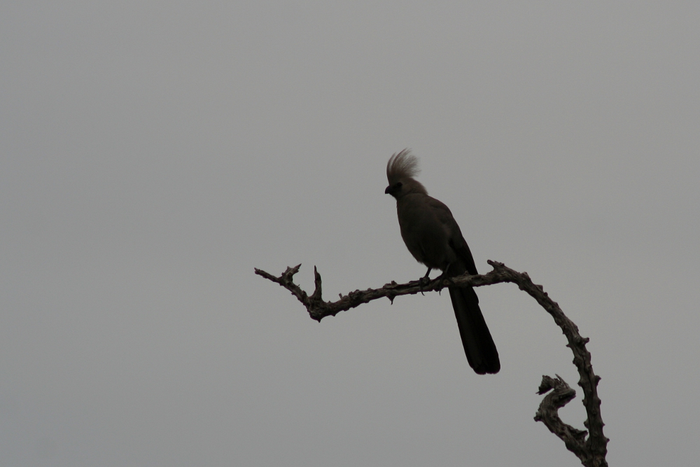 The Grey Lourie (Corythaixoides concolor) is a medium-sized bird species occurring in southern Africa (Namibia, South Africa, Botswana, Zimbabwe, and Mozambique). Additionally, it is also called “go-away-bird” refering to its characteristic call which resembles this phrase. Both sexes look alike and have an uniformly grey plumage. On top of their heads, the birds carry a prominent crest which is raised if agitated. They are quite common in dry, open woodlands, thornveld, farms, parks, and suburban gardens where they feed mainly on fruits, flowers, seeds, insects, and snails. I took the photographs in this post during a safari in the Etosha National Park, Namibia (February 2012).