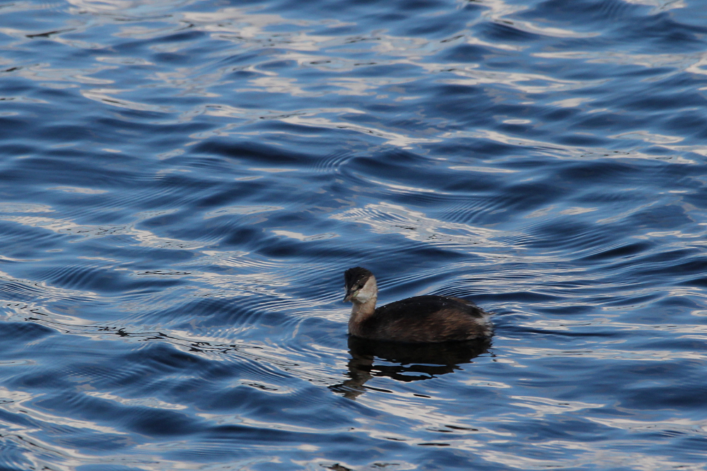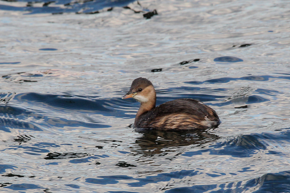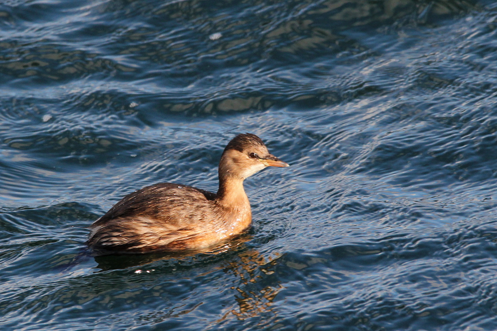 The Little Grebe (Tachybaptus ruficollis) is a small water bird occurring in much of Europe, Africa, and Asia (up to Indonesia). Individuals breed in densely vegetated lakes or rivers, but enter open or coastal areas during the winter. The birds are excellent divers and search for prey underwater. Their diet consists mainly of aquatic animals including insects, molluscs, crustaceans, amphibians, and small fish. I have photographed a number of Little Grebes during a sunny sunday afternoon at the coast of northern Germany in February 2015. During this time of the year, the birds have their duller non-breeding plumage. In the summer months, they are darker with a rufous neck and cheeks.