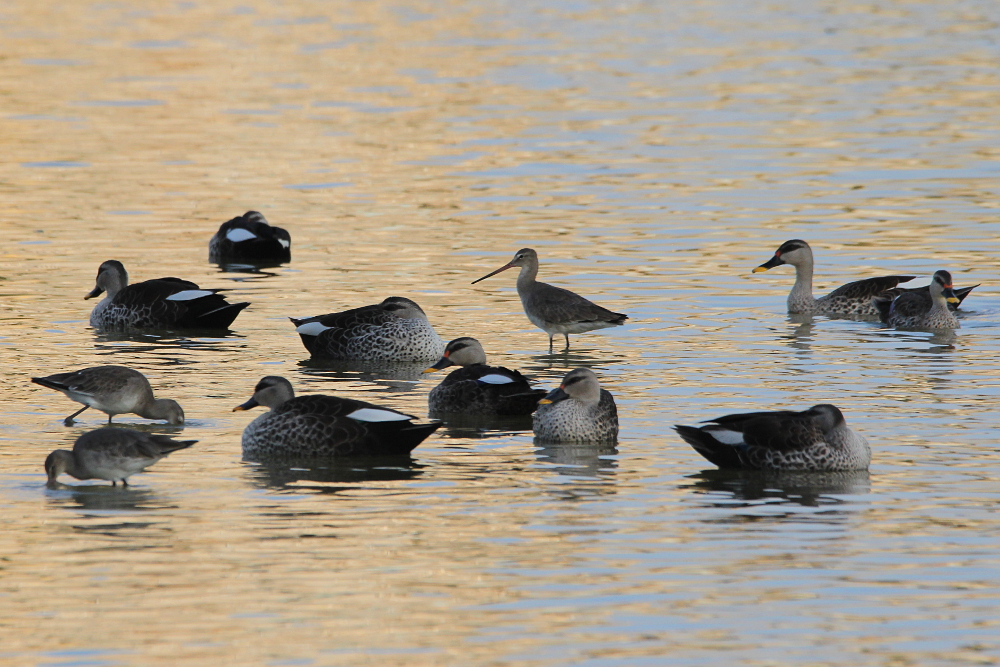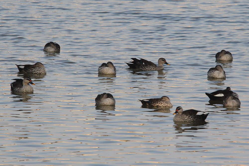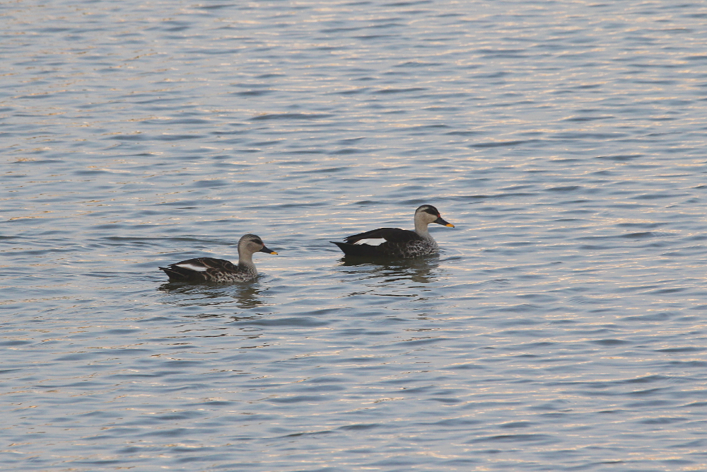 The Spot-billed Duck (Anas poecilorhyncha) is a water bird occurring in tropical and eastern Asia (from Pakistan and India through Southeast Asia up to China and southern Japan). The birds inhabit mainly freshwater lakes and marshes. Their diet consists predominantly of plant matter collected by dabbling in shallow waters. In addition, insects, frogs, worms, and small fish are also occasionally caught. Outside the breeding season, the ducks are quite gregarious and form small flocks. I have photographed these pretty birds at the central water tank of Bhuj, the district capital of Kachchh, India (January 2015).