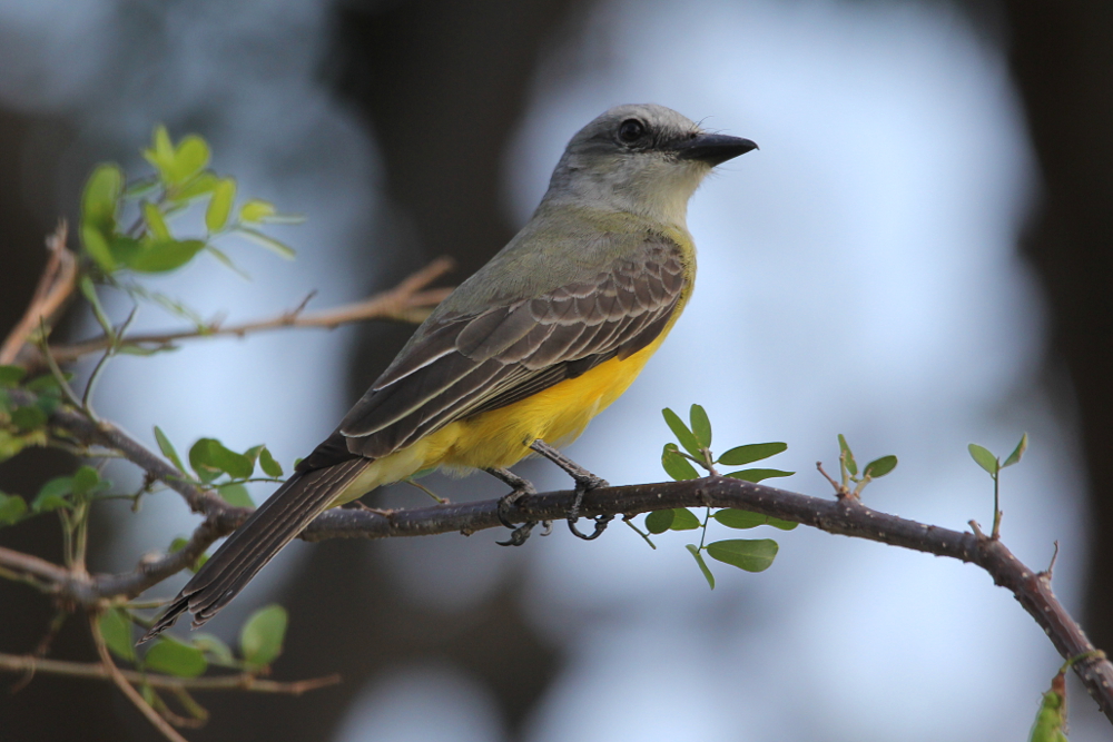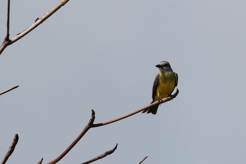 The Tropical Kingbird (Tyrannus melancholicus) is a medium-sized tyrant flycatcher occurring in the southern United States as well as Central and South America (up to central Argentina and western Peru). The birds prefer open habitats with few trees and shrubs including gardens and parks. They are commonly seen perching on tree tops or roadside wires to observe the surrounding area. The birds prey mainly on insects which are characteristically caught in flight. Fruits supplement the diet occasionally. Due to their wide range and since the birds are quite opportunistic in their habitat choice, they are still common and the species is not considered threatened. The photographs in this post were taken in Panama in March 2014.