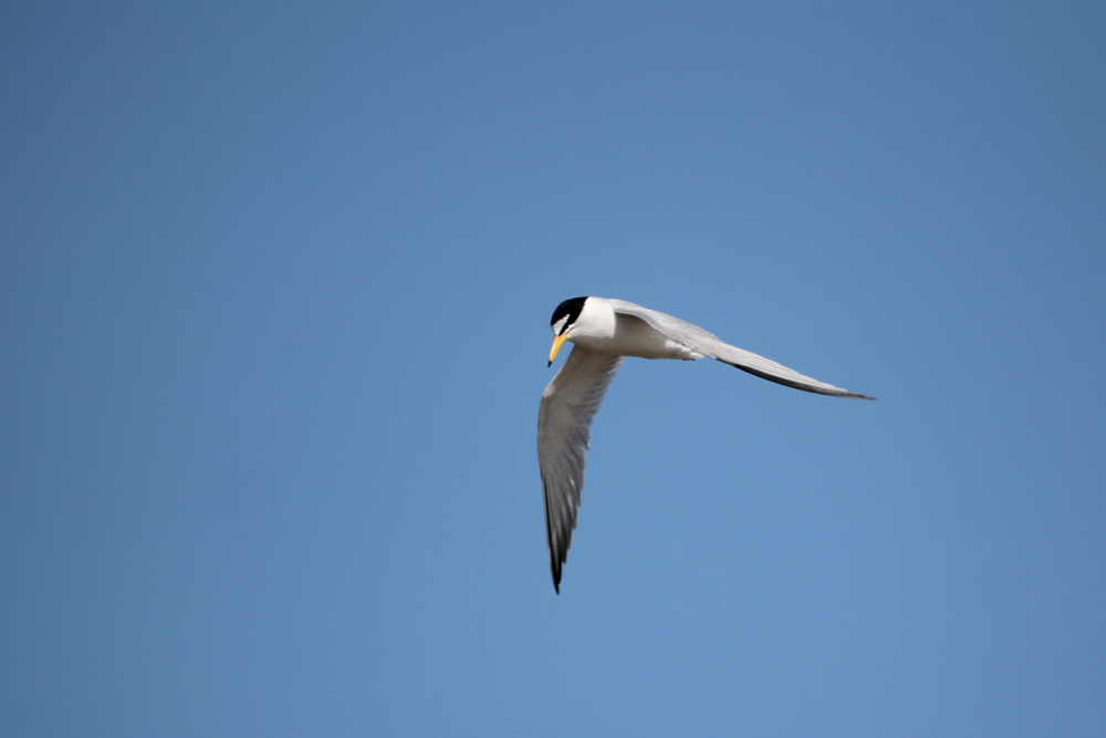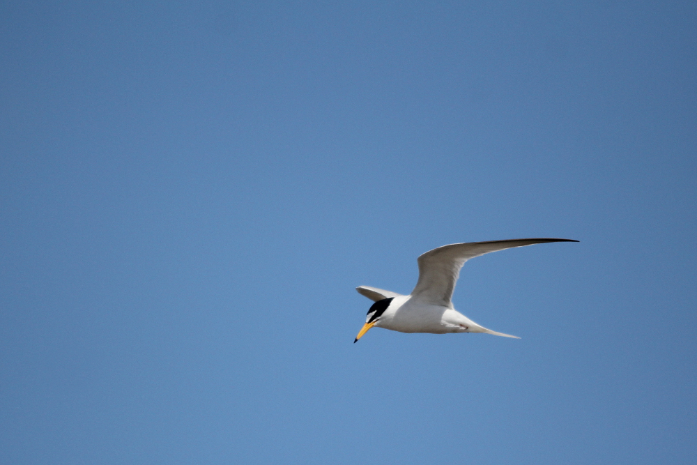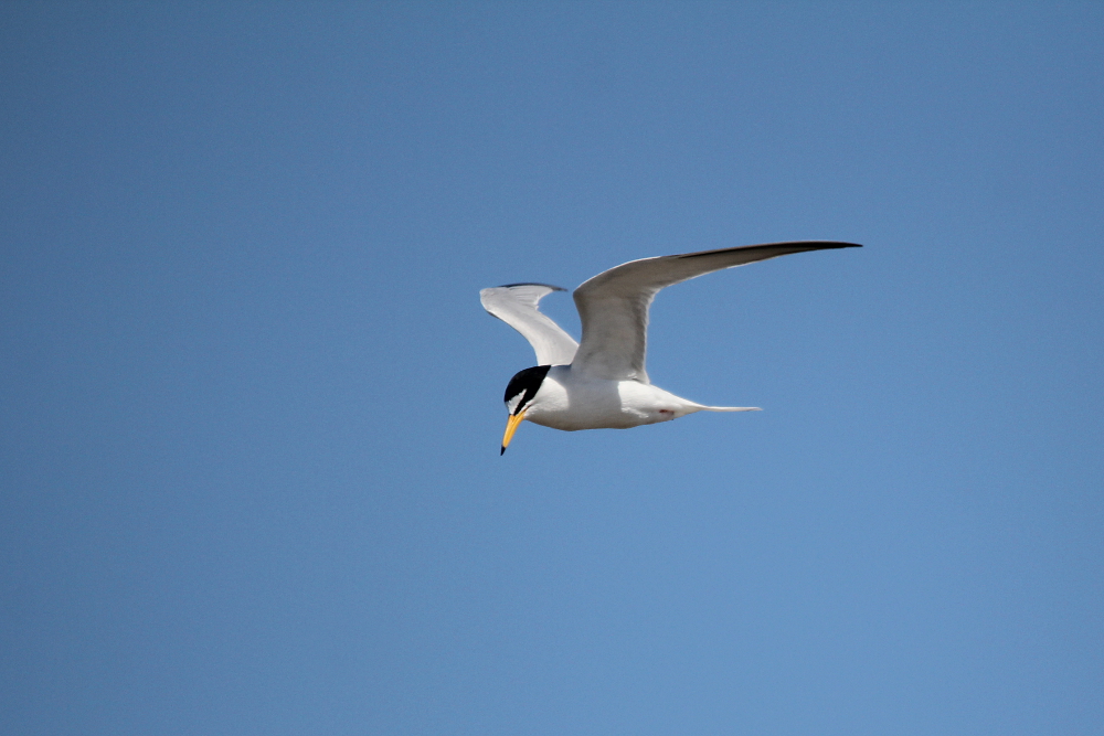 The Little Tern (Sternula albifrons) is a small seabird breeding in Europe and Asia, but migrating much further south during the winter months (up to South Africa and Australia). In Europe, the species is the smallest and rarest of all occurring terns. The birds breed in colonies at the coast or on sandbanks of larger rivers. Similar to other terns, they aggressively defend their nests and attack intruders. They feed mostly on fish, crustaceans, and mollusks, which are caught by diving into the watere from the air. The species’ population plummeted drastically during the 20th century due to pollution, habitat loss, and human disturbance at its breeding sites. While beaches were used more extensively for recreational activites, the river courses became more regulated leading to the disappearance of sand banks. Although some of its habitats have become protected in the meantime, the species is still considered threatened by extinction in most European countries. I have photographed these agile little birds at the coast of the Baltic Sea in northern Germany in May 2015.