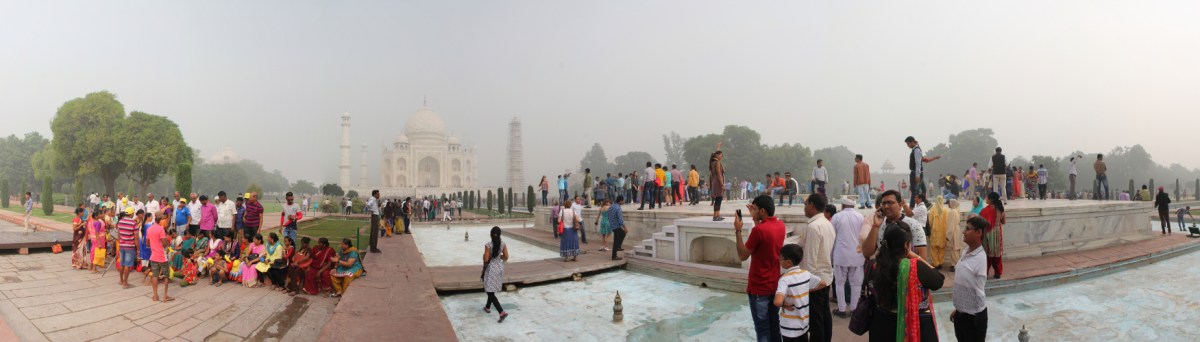 panoramic view towards the Taj Mahal Published January 12, 2017 at 1751 × 500 in India 2016 (part XLIX): Agra ← Previous Next → panoramic view towards the Taj Mahal