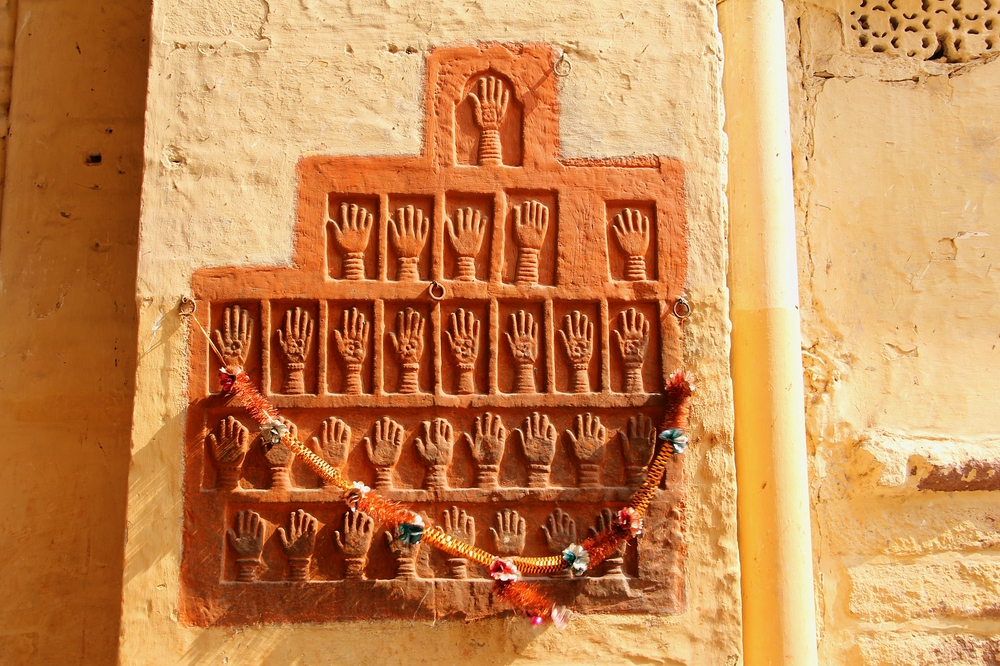 handprints of the maharajas’ wives committing sati Published January 21, 2017 at 1000 × 666 in India 2016 (part L): Jodhpur ← Previous Next → handprints of the maharajas’ wives committing sati