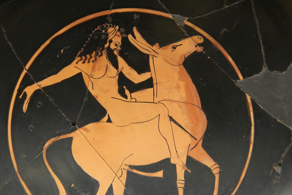 kylix showing a satyr on a donkey (510 BC) Published March 18, 2017 at 1000 × 667 in Greece 2017 (part I): Athens ← Previous Next → kylix showing a satyr on a donkey (510 BC)