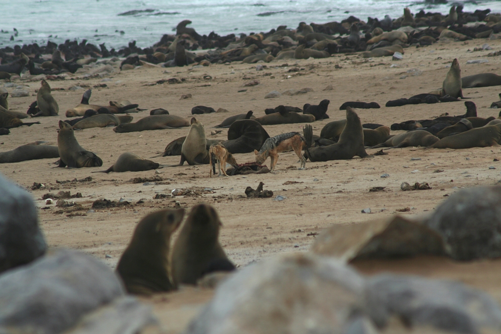 Black-backed Jackals among seals Published April 17, 2017 at 1000 × 667 in Namibia 2007 (part IV): Skeleton Coast ← Previous Next → Black-backed Jackals among seals