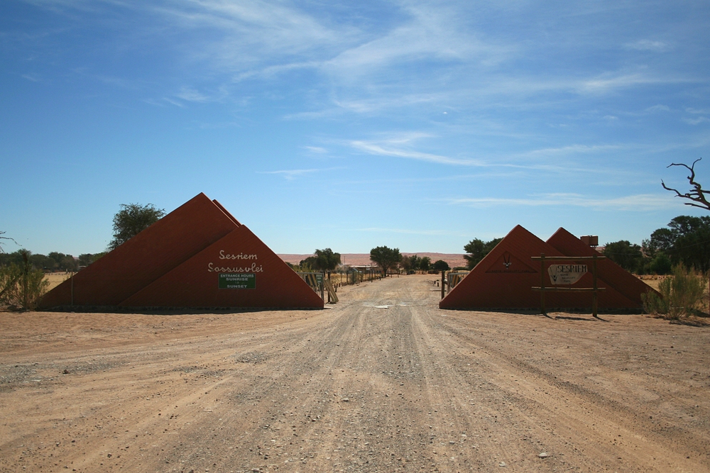 entrance gate Published May 6, 2017 at 1000 × 667 in Namibia 2007 (part VIII): Sossusvlei ← Previous Next → entrance gate
