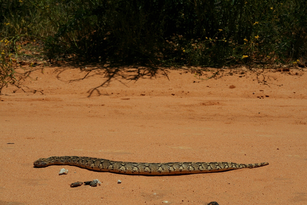 dead Puff Adder Published June 10, 2017 at 1000 × 667 in Namibia 2007 (part XII): Waterberg National Park ← Previous Next → dead Puff Adder