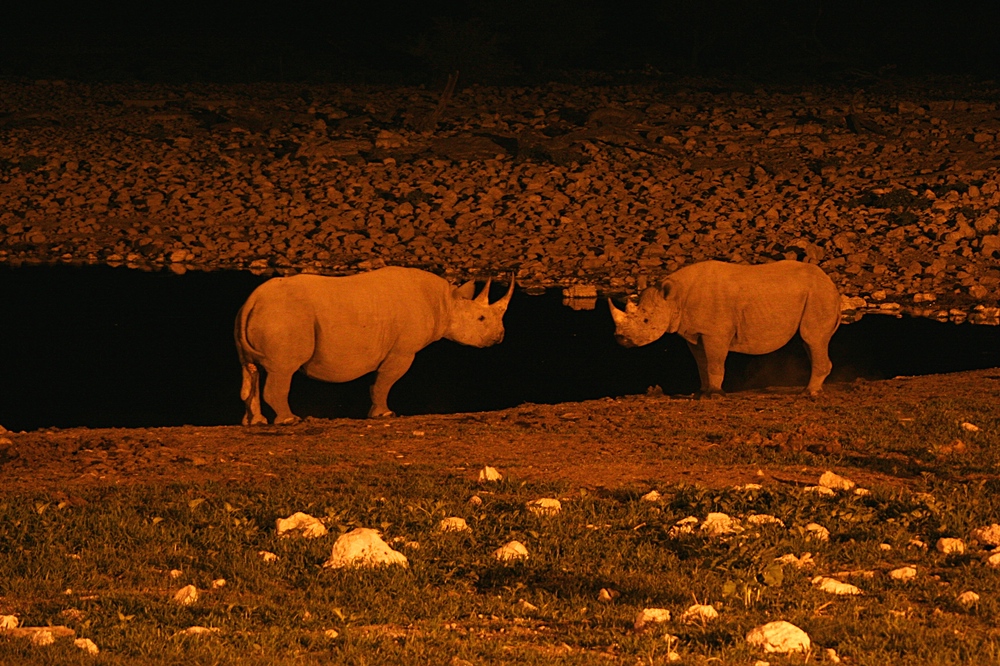 Black Rhinos at Okaukuejo Waterhole Published June 15, 2017 at 1000 × 666 in Namibia 2007 (part XIII): Etosha National Park ← Previous Next → Black Rhinos at Okaukuejo Waterhole