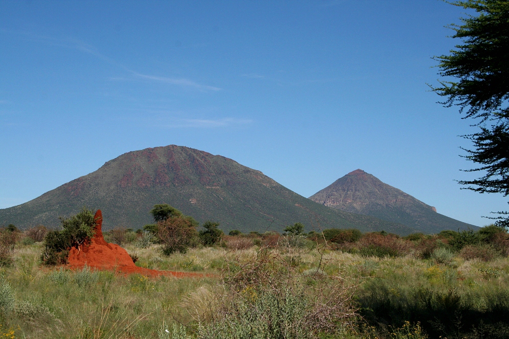 On the way to Windhoek, we passed several significant spots. Tsumeb is a small, seemingly unremarkable town close to the Etosha National Park, but has a long and very important mining history. Throughout the 20th century, the mine produced more than 30 million tons of ore, especially copper, lead, and zinc. In addition, a large number of new minerals were first discovered here.