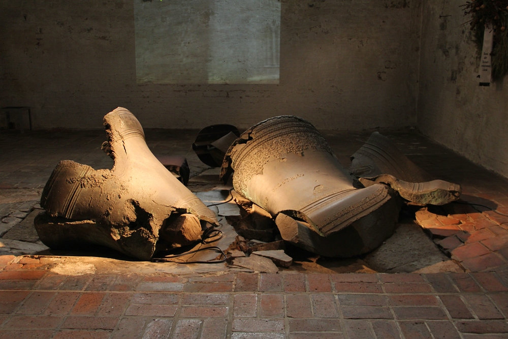 church bells which fell down during a 1942 bombing raid Published October 7, 2017 at 1000 × 667 in Germany 2017: Lübeck ← Previous Next → church bells which fell down during a 1942 bombing raid