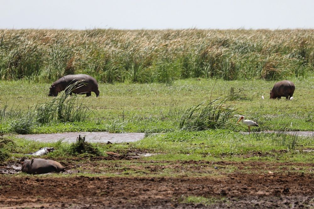 Hippos and a Yellow-billed Stork Published April 2, 2018 at 1000 × 667 in Tanzania 2017 (part VII): Lake Manyara National Park ← Previous Next → Hippos and a Yellow-billed Stork