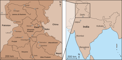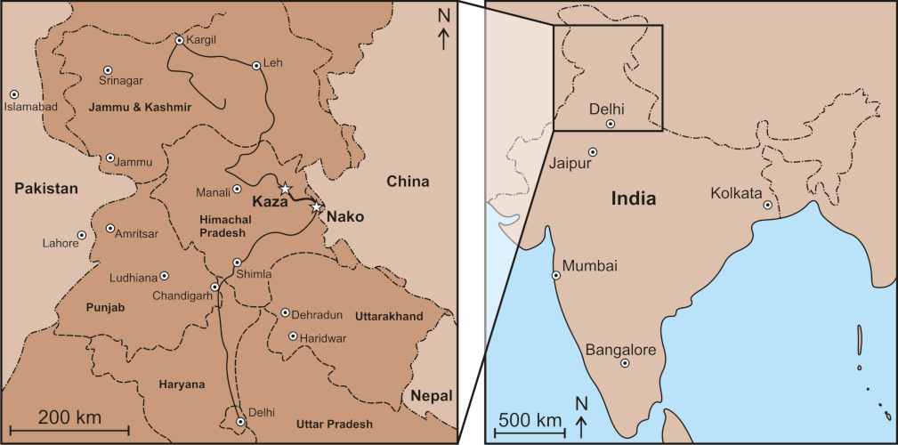 Finally, we reached our destination: Kaza, the administrative center of the Spiti Valley. This small town with about 3,000 inhabitants was our base for the coming days, during which we conducted field work in the surrounding mountains.