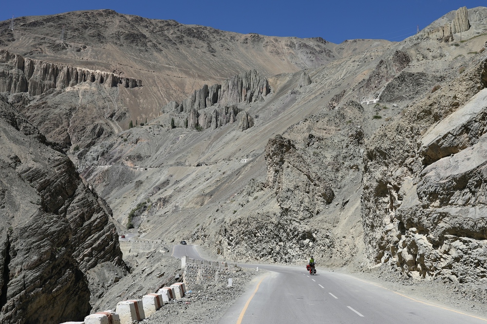 National Highway 1 is the main route connecting Leh and Srinagar in the state of Jammu & Kashmir. Due to its strategic importance at close proximity to the Line of Control, the road is in good condition and driving was very smooth. We passed several ancient monasteries (e.g., Basgo and Lamayuru) and crossed two high mountain passes (Fatu La at 4108 m and Namika La at 3700 m). Already near our destination of Kargil, we stopped at Mulbekh where we visited the beautiful Chamba Buddha Statue which was carved into a rock some time in the 8th century AD!